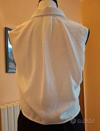 Canotta bianco con colletto e bottoni. - Tessuto leggero e leggermente testurizzato. - Design senza maniche. - Chiusura frontale con bottoni.