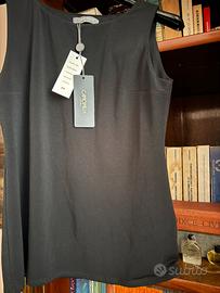 Canotta Camomilla nera, fresca ed elegante, modella la figura, con riprese al seno e sfiancatura, dando morbidezza al corpo senza comprimerlo. Perfetta, con cartellino. Taglia 42/44
