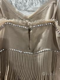Canotta canottiera donna color cipria, taglia S, particolare e lavorata con paillettes in seta di Simona barbieri, marca Twin set usata per due cerimonie e mai più rimessa, vendo per inutilizzo