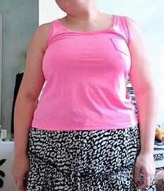 Se ami farti notare, questa canotta rosa fluo di H&M è quello che fa per te! Un capo divertente e leggero, perfetto per l'estate. È una taglia XS, veste benissimo e ha un piccolo taschino decorativo. Praticamente nuova, pronta per la sua prossima avventura. Made in Turkey. Corta davanti e lunga dietro, dietro semi trasparente
