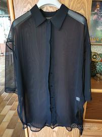 CAMICIA NERA in poliestere. Mezza manica. Con spacchi laterali