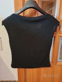 Canotta Gondola Blu Effetto brillantinato con perline semitrasparente da spalla a spalla cm 50 Lunghezza cm 46