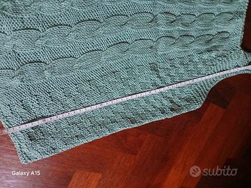 Canotta fatta con i ferri e filo di puro cotone azzurro perlato, taglia indicativamente S/M (ci sono le misure di riferimento nelle foto), nuova mai indossata