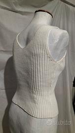 canotta in cotone, color panna, lavorata a coste, taglia S