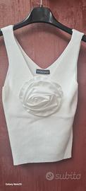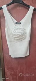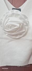 canotta con fiore tessuto a costine elastica