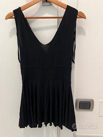 Vendo canotta nera di cotone con ruches di pizzo e di tulle sulla scollatura, più nastri sulle spalle. In ottime condizioni.