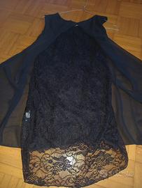 canotta nera elegante con inserto in pizzo dietro lunghezza davanti 70, dietro 80