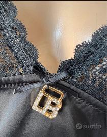 Canotta Laura Biagiotti da donna, taglia 2B, veste circa S, come nuova. Modello femminile color nero, con dettagli in pizzo, trasparenze e raffinati inserti laminati gold, che rendono il capo più particolare ed elegante. Realizzata in tessuto elasticizzato e confortevole, composto da: • 80% poliammide • 20% elastan Perfetta come top intimo, sottogiacca oppure come canotta lingerie elegante. #laurabiagiotti #canottadonna #topinpizzo #trasparente #laminatogold #canottanera #lingerie #intimodonna #comenuovo