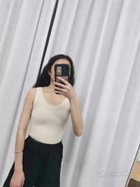 Canotta panna da donna 2023 Estate che copre il seno slim senza maniche T-shirt colore beige