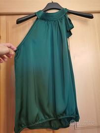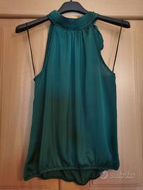 Canotta promod, nuova, verde smeraldo, verde scuro, fiocco sul collo, scollo all'americana, usata una volta Taglia XS / IT 38 / EU 34 Colore verde scuro
