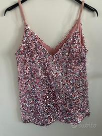Canotta rosa elegante pailletes Taglia unica