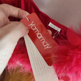 canotta rossa Yamamay con piume sullo scollo davanti tg M nuova con etichette