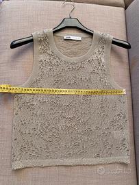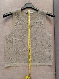 Bellissima canotta girocollo dal colore argentato,molto elegante nonostante l'effetto ragnatela.