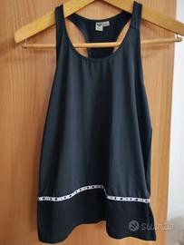 bellissima canottiera per fitness di colore nero con scritta bianca in vita della Roxy. taglia indicata S. la canottiera è praticamente nuova e assolutamente priva di difetti. si spedisce lavata e stirata.