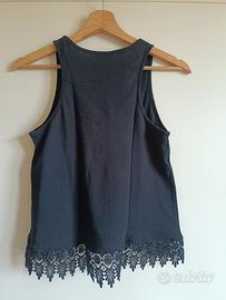 Canottiera nera con decorazioni in pizzo. Marca: Terranova Taglia: XS Ottime condizioni. Rimango a disposizione per qualunque informazione.