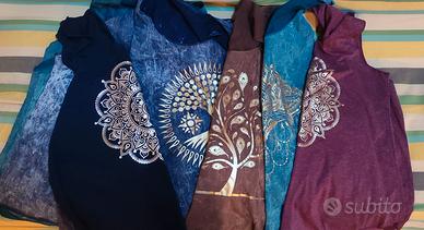 in vari colori con stampe dorate e argentate di simboli spirituali: Om, Tao, Mandala, Fiore della Vita, Albero della Vita, Fiore di Loto, Lord Ganesha...
