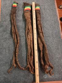 Veri dreadlock come da foto vari diametri lunghezza 70 cm colore come da.foto tre grossi uno da 7 cm circa e due da5 cm di diam.ma un po piatti che diventano 3 fino a 4 pz in uno quelli con spugnetta rossa gialla e verde e gli altri circa da 2 cm di diam tondi