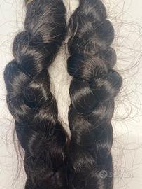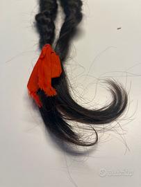 2 trecce di capelli scuri naturali mai trattati o tinti. Tenute benissimo. Lunghe 60 cm.