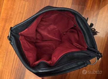 Borsa capiente in ecopelle, 35x40 perfetta per ogni occasione. Il design è arricchito da dettagli in stile boho. - Chiusura con zip. - Tasca interna con zip. - Dettagli con frange sui lati. - Manici per portarla a mano o a spalla