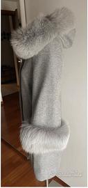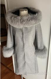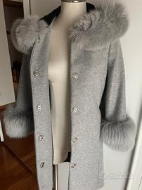 Elegante cappotto Flavio Castellani in lana vergine con cappuccio e maniche in vera pelliccia di volpe.