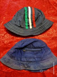 Sono N.2 Cappelli a campana, modello Pescatore, uno Blu con tanto di cerniera a corredo lateralmente per inserire comodamente spiccioli o altro e l'altro Cappello con la bandiera italiana lateralmente rappresentativo della celebrazione del Campionato Mondiale di Calcio che si è svolto in Italia nel 1990. Li offro in vendita al solo prezzo di smaltimento.