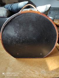 Bellissima cappelliera in cartone dei primi del 900, rivestita di cuoio nero.
