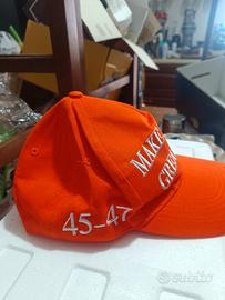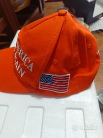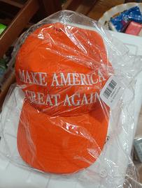 Cappellino nuovo, mai indossato, colore arancione, tutto cucito, non stampato. Fronte, Make America great again. Lato sx, bandiera Americana, lato dx, 45 47, retro Trump. Ritiro zona Valle Telesina, Bn o spedizione a carico dell'acquirente. Non chiedetemi sconti, scambi o altro. Lasciate un messaggio, sarete contattati.