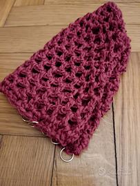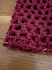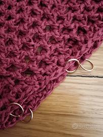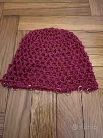 Cappellino cuffia a rete estiva colore rosso borgogna. Realizzata all'uncinetto con filato misto cotone. Design a rete con anellini dorati al bordo. Taglia unica. Nuovo.