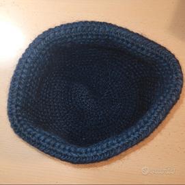 Cappellino beanie blu ad uncinetto in lana di alpaca 70%