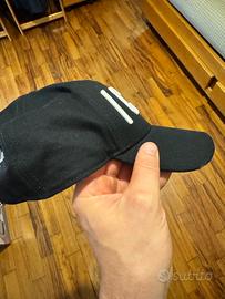 Cappellino baseball nero, praticamente nuovo. Usato 1 volta. L’interno e esterno non presenta nessun segno di usura né aloni o macchie.