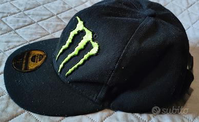 cappello berretto con logo Monster usato ma in buone condizioni taglia 7 1/8 57 cm con adesivo su visiera colore nero e logo verde