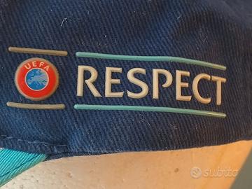 Primo cappellino prodotto da UEFA nell'ambito della campagna 'Respect' avviata nel 2008 ed al quale seguirono numerosi altri modelli, la maggior parte dei quali dedicati a singole manifestazioni di cui riportavano lo specifico logo o il claim. Allo stesso modo, molte squadre di club e quasi tutte le nazionali hanno già da tempo aderito alla campagna, adottando il relativo slogan mediante patch applicate ad abbigliamento ufficiale, gadget, merchandising ecc.