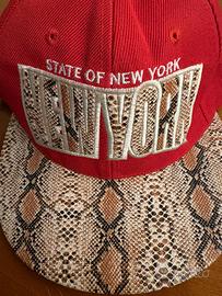 Vendo originalissimo cappellino snapback di colore rosso acceso, caratterizzato da un design audace e dettagli in stampa pitonata (snakeskin). Perfetto per amanti dello stile urban e streetwear che vogliono un accessorio che non passi inosservato.