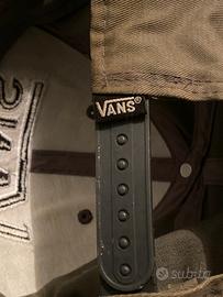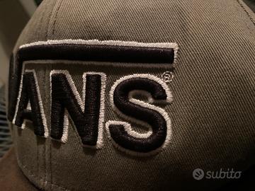 Cappellino originale Vans con logo grande ricamato frontale. Colore khaki/marrone con visiera curva, stile skate e streetwear.