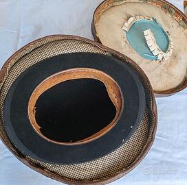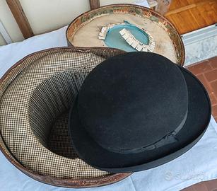 Vendo autentico cappello a bombetta (bowler hat) DUXBAK, datata 1875. Unico proprietario, “Registered Rain-Proof Hat”, taglia 7 (circa 56 cm). Inclusa la scatola originale da trasporto in pelle rigida (con tratti di usura), foderata internamente in tessuto
