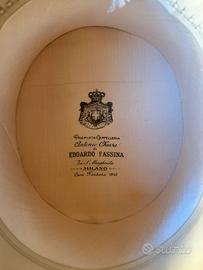 Il cappello proviene dalla Premiata Cappelleria Antonio Chiesa di Edoardo Fassina – Milano, casa storica fondata nel 1840, come visibile dal marchio originale all’interno.