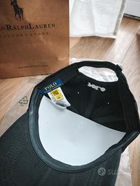 Berretto Ralph Lauren unisex con visiera in 100% cotone,logo e scritta ricamato completo di bustina e busta di carta