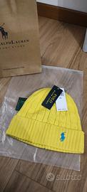 Berretto Ralph Lauren unisex colore giallo 100% caldo cotone,trama a trecce e risvoltinon a costine con logo ricamato, vestibilità adulto regolare, perfetto per autunno inverno, completo di bustina e busta di carta Ralph Lauren