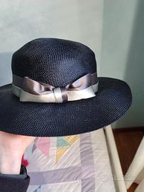 cappello donna estivo in viscosa di colore blu con fascia grigio azzurra