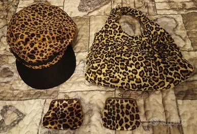Cappello + Borsa + 2 Portafoglio Borsello LEOPARD