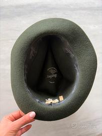 Cappello Borsalino Traveller da viaggio in feltro di lapin extra fine, 60 cm, sfoderato e con marocchino in tessuto. Arrotolabile e tascabile. Logo esterno con qualche usura 100% Feltro lapin extra fine Made in Italy by Borsalino