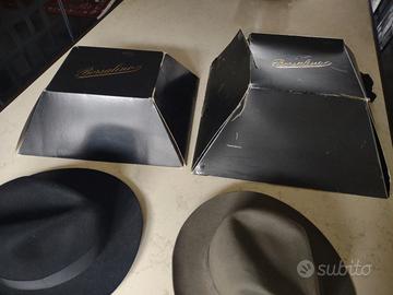 due cappelli Borsalino uomo, grigio e nero taglia 58 con scatole originali . prezzo 75€ ciascuno
