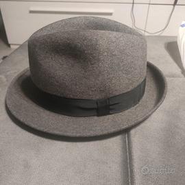 Cappello Borsalino foderato, cinta in cannetè larga 3 cm. La tesa misura circa 5 cm, logo del brand interno. Superior quality. Taglia 58.