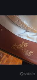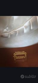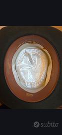 CAPPELLO BORSALINO VERDE "TRIONFO" - FEDORA UOMO VINTAGE Marca: Borsalino - Linea "Trionfo" Tipo: Fedora classica da uomo Colore: Verde scuro (verde bosco/oliva) Materiale: Feltro di alta qualità Taglia: 5% (circa cm 56) Epoca: Vintage, metà XX secolo Rivenditore originale: Giuseppe Gallieni, Largo Chigi 7 / Via C. Battisti 136, Roma Provenienza: Grand Prix Paris 1900 (marchio storico Borsalino) Condizioni: Buone condizioni vintage, coerenti con l'età del pezzo. Struttura integra, feltro in buono stato. Note: Straordinario cappello Borsalino della prestigiosa linea "Trionfo", con marchio Grand Prix Paris 1900. Completo di fodera interna in seta con stemma e fascetta interna in pelle stampata in oro. Pezzo da collezione per appassionati di cappelleria italiana d'epoca. Acquistato originariamente presso la storica cappelleria Giuseppe Gallieni di Roma.