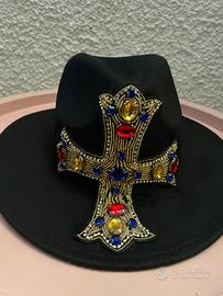 Cappello nero con croce Pari al nuovo mai indossato Modello unico Taglia dalla 57 regolabile alla 54