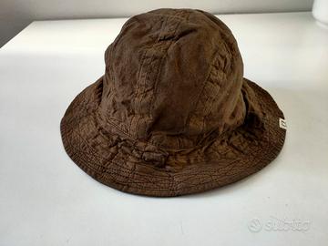 Capello in cotone cerato tinto in capo con tecnica Batik. Struttura a pannelli e sfoderata all'interno. Logo ricamato Verde militare 100% cotone