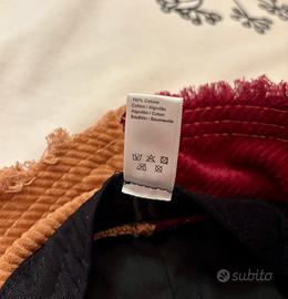 Cappello bucket originale Scout, in velluto a coste 100% cotone, con motivo patchwork in tonalità autunnali: verde oliva, senape, bordeaux.