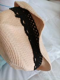 cappello beige con pizzo nero , unisex , taglia unica, marca calliope, mai usato