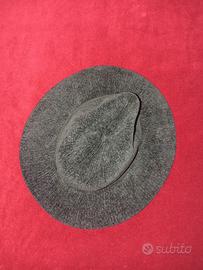 Cappello in velluto a costine, tesa larga e laccetto interno per regolare la misura. Galetta intrecciata.