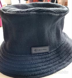 Cappello cloche nero in tricot di cotone . Tab gommato esterno con logo. taglia M Made in Italy Calvin Klein originale